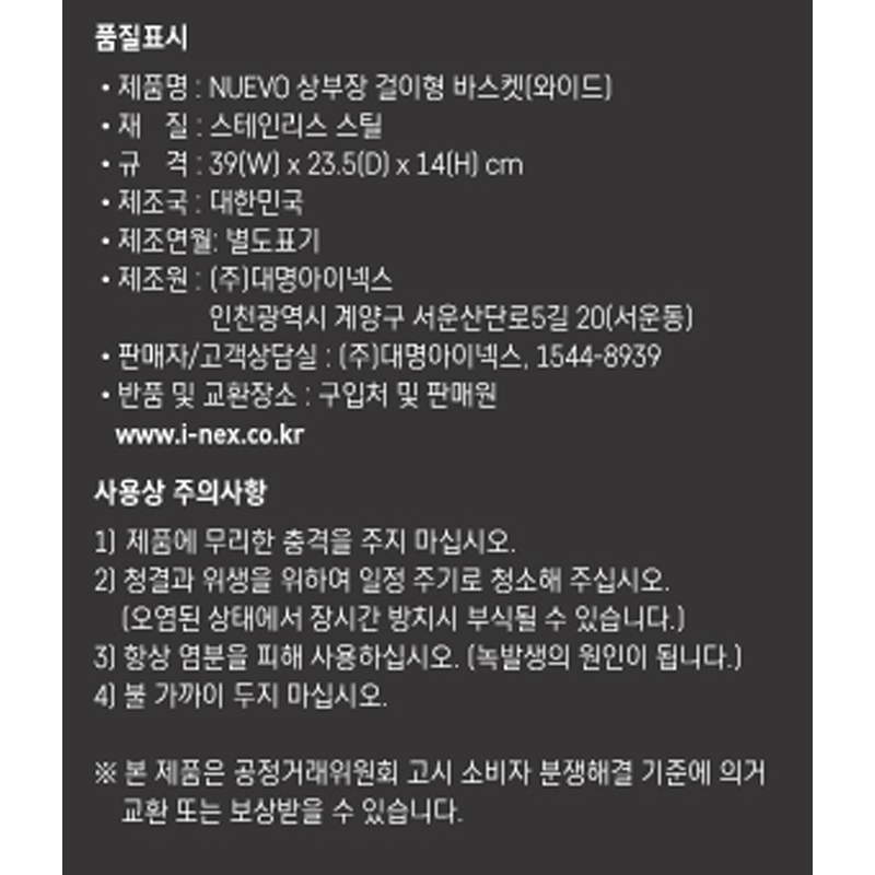 누에보 상부장 걸이형 바스켓 (와이드) 39*23.5*14cm