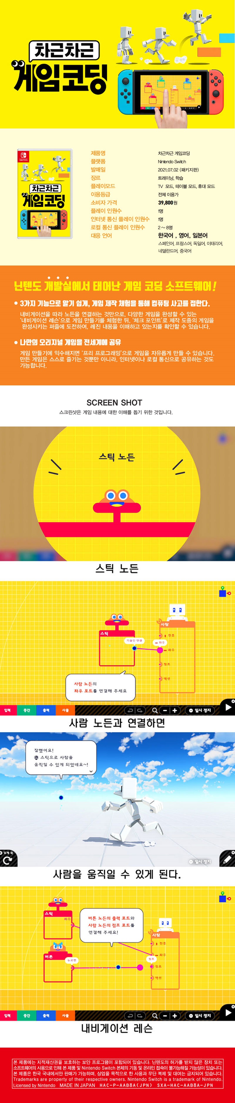 닌텐도 스위치 차근차근 게임 코딩 타이틀