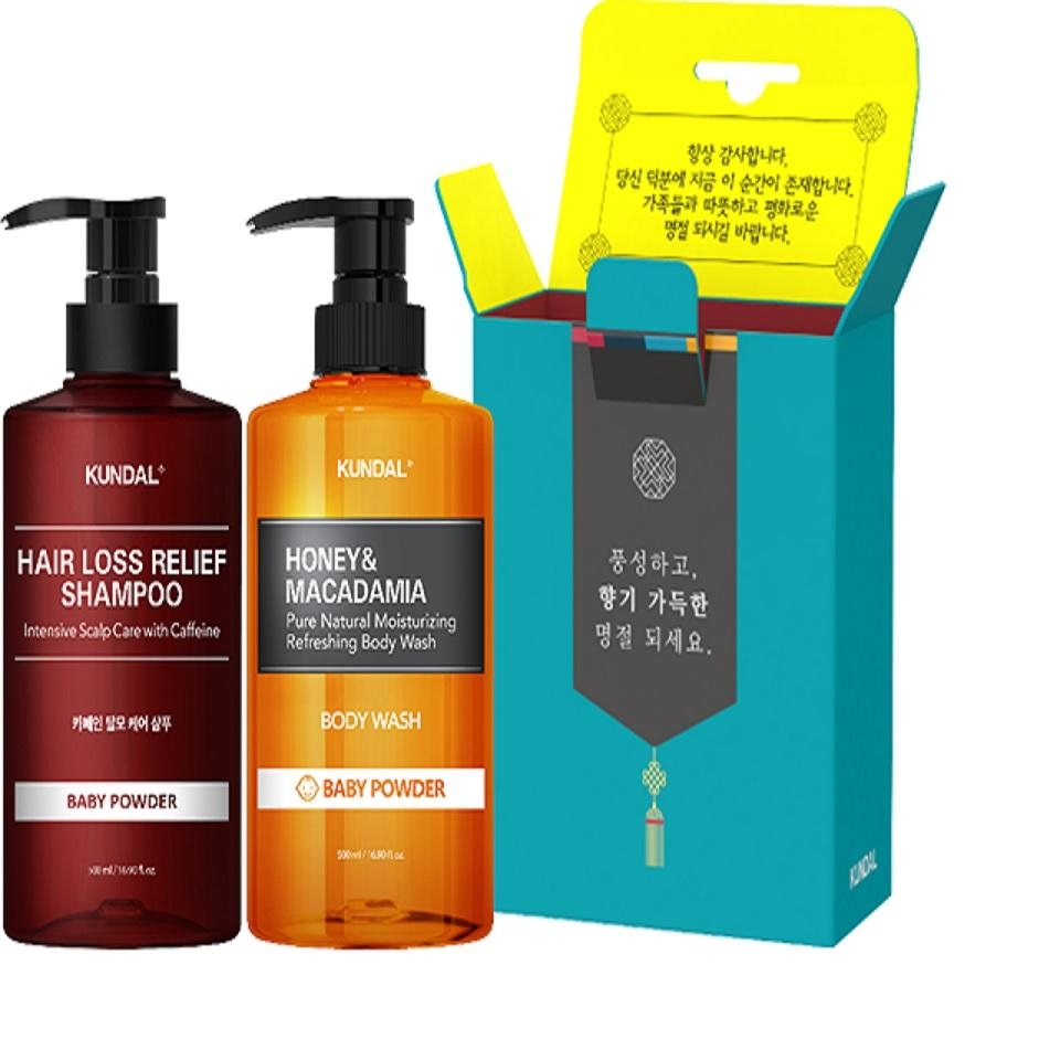 쿤탈 샴푸 선물세트 베이비파우더향 탈모샴푸500ml,바디워시500ml