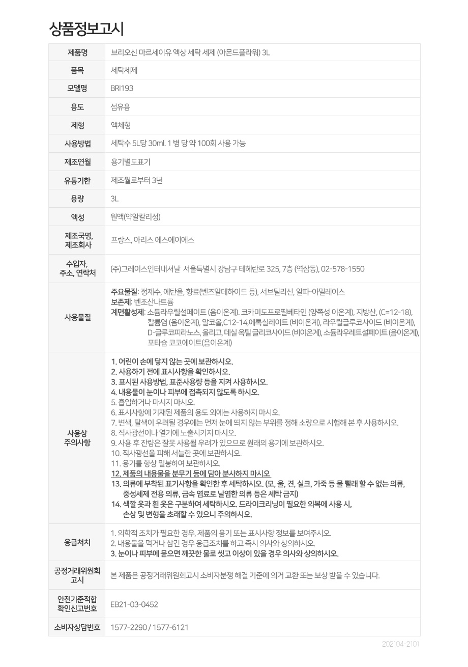 브리오신 마르세이유 액체세제 3L
