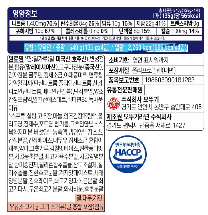 오뚜기 진밀면 멀티 135Gx4